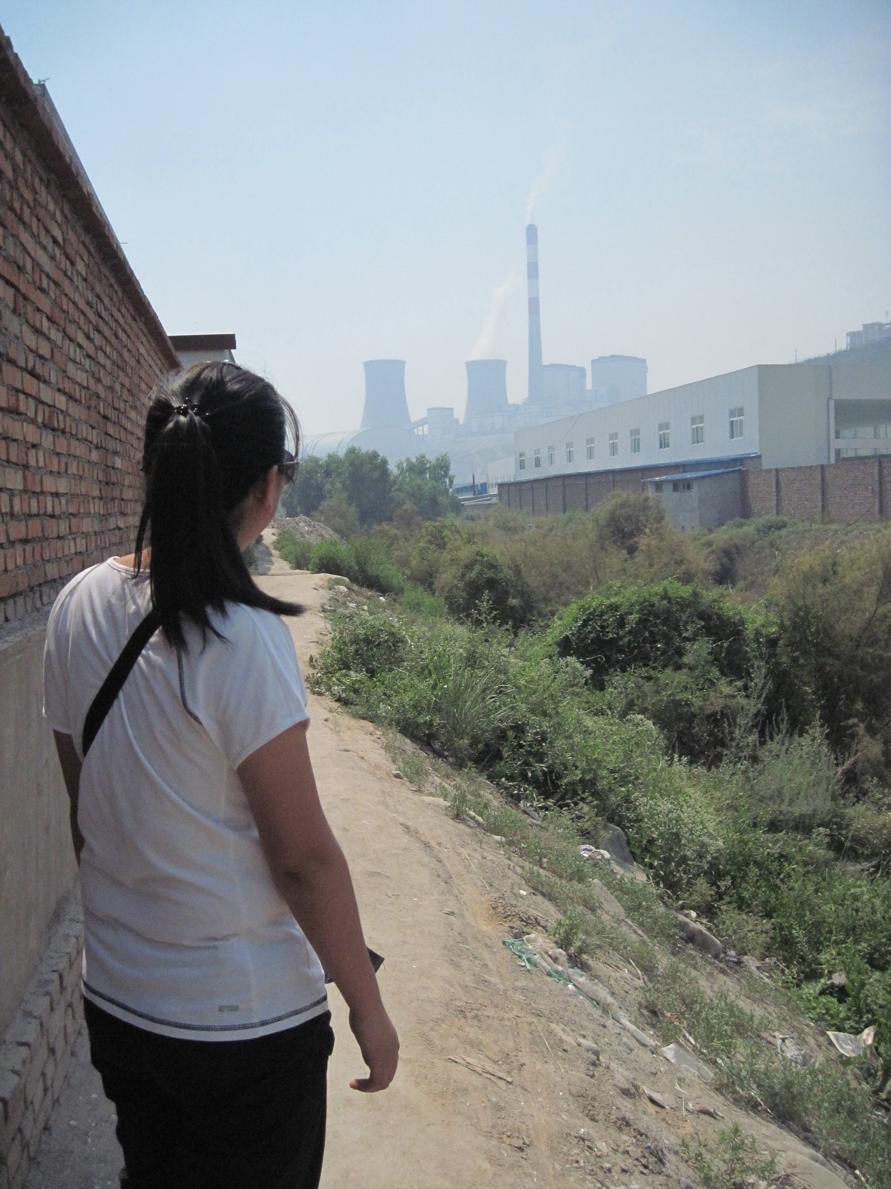 Walking back along the tributary, we meet a man who has lived in this industrial area his whole life. He offers to take us to what he says is the real source of the sewage tributary–not the sewage pools we have just seen, but rather to several sites leading to a power plant and a sewage treatment plant that is still under construction.