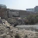 Into the collection station, we find two large pipes spilling grey-and-black speckled water, exactly the same as at the amusement park. A woman who lives across from the sewage pool says that on the rare occasions that it rains, the sewage pool overflows onto her patio, cracking the cement (she gestures to cracks that look like several small earthquakes have hit her front deck). Also, she says that people come regularly at night with trucks to dump waste and trash from other sites into the tributary~ But nobody is watching, nobody is managing this, she says.